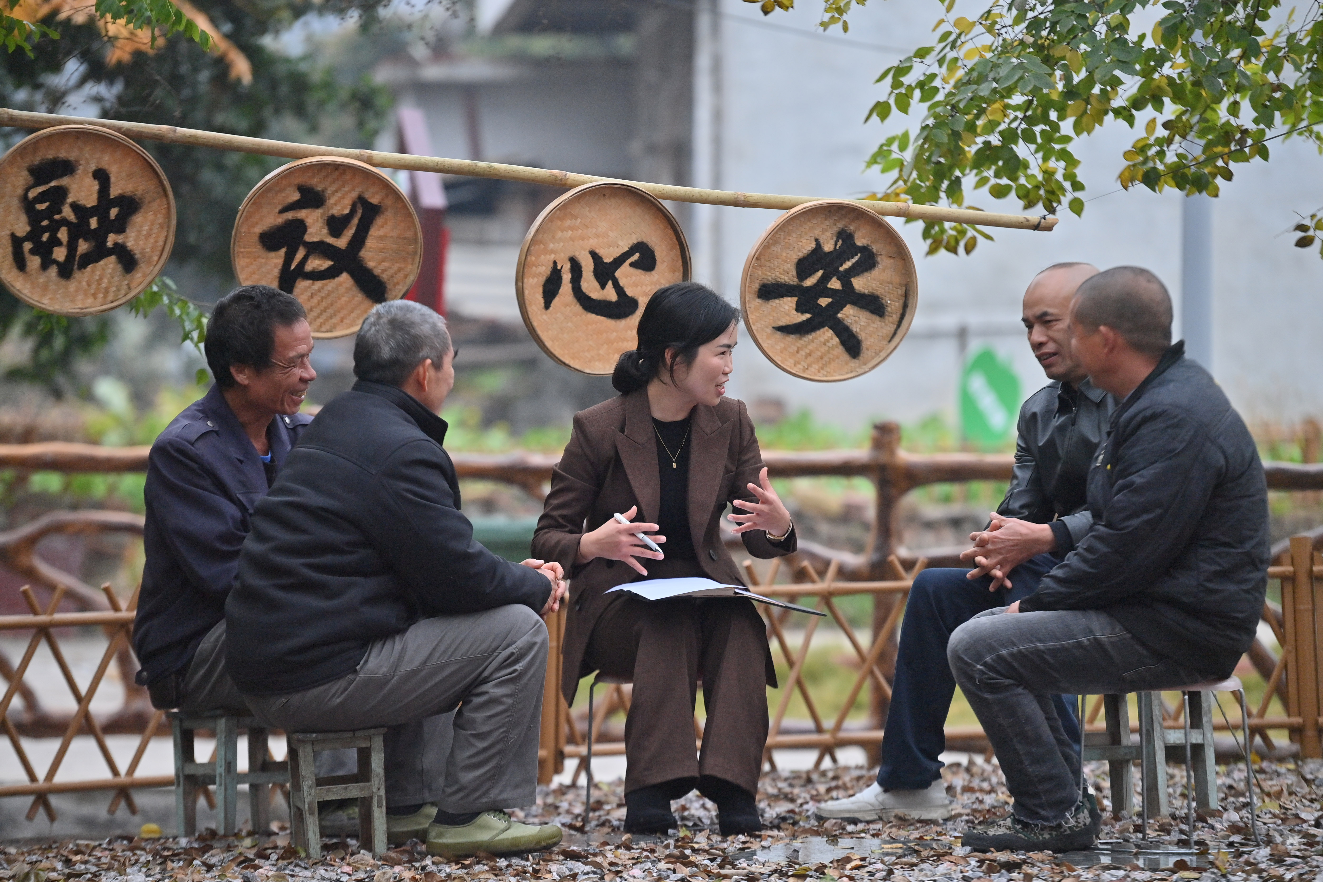 在广西融安县浮石镇六寮村议事协商主题广场,镇、村干部和村民在议事(2024年1月5日摄)。新华社记者 黄孝邦 摄