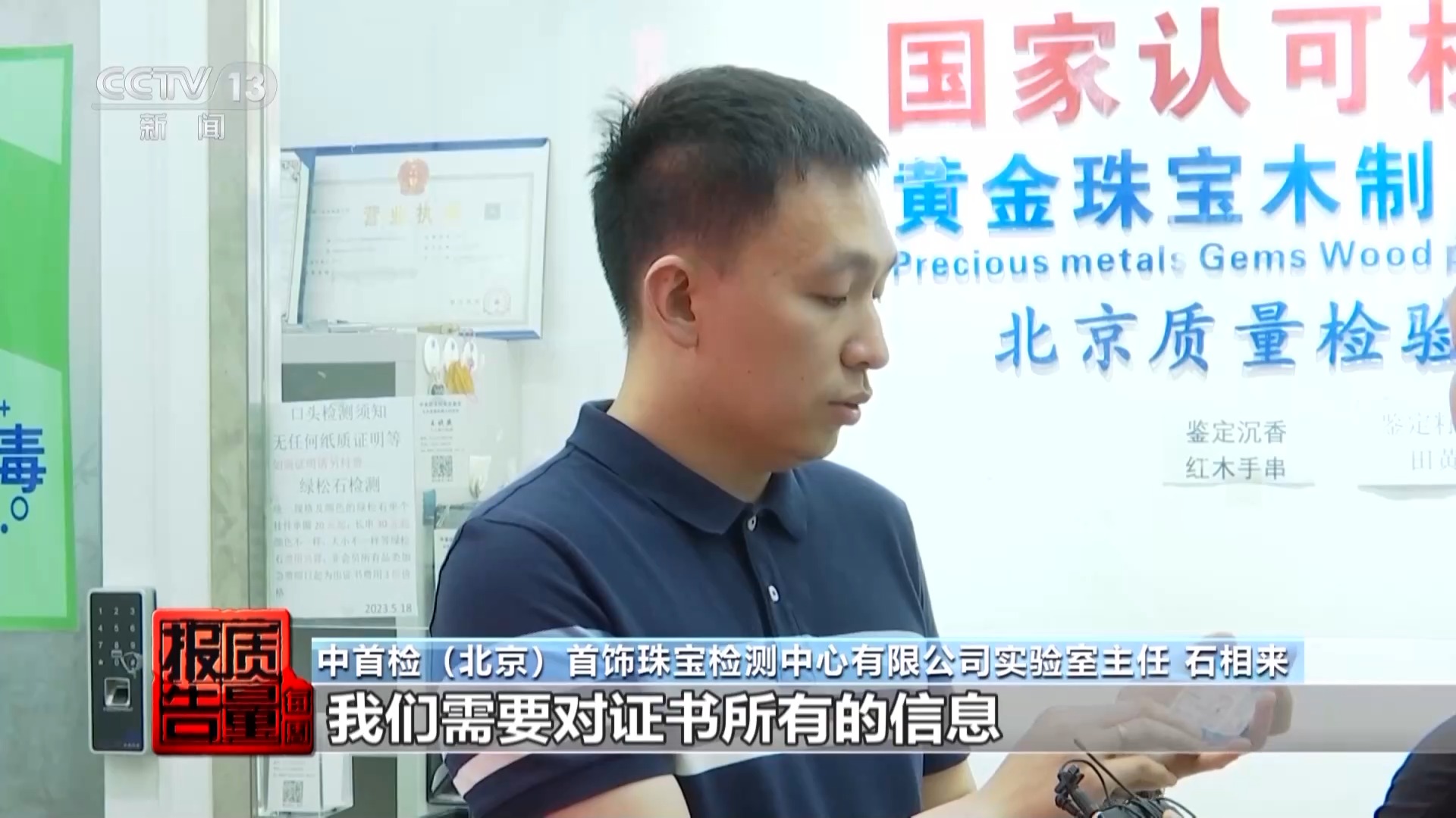 中首检(北京)首饰珠宝检测中心有限公司实验室主任 石相来:我们通常意义上的理解,如果单颗珠子出现在整条金属制品上,定位应该是配饰,我们需要对这些证书的所有信息,都需要抓取,防止商家偷换概念。