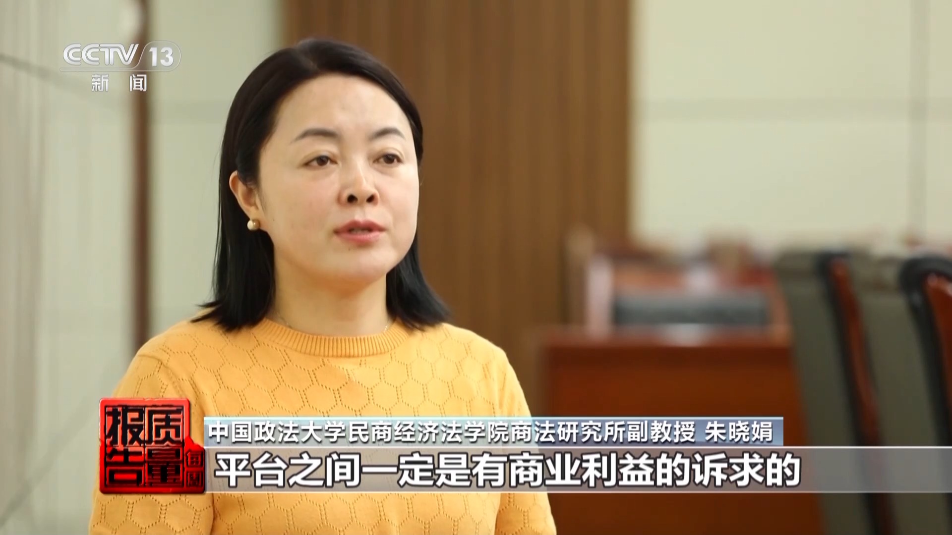 中国政法大学民商经济法学院商法研究所副教授 朱晓娟:平台之间一定是有商业利益的诉求,平台为了流量,为了平台入驻客户的数量更多、更广,自行降低标准,实际上是一个商业选择,如果出现这种情况,那保证金不足,跟经营是不是相匹配。找不到商家,当然要求你承担先行赔付。《民法典》,包括《公司法》都在讲,一个公司要有诚意,不能资本显著不足。根据经营的范围,经营的行业,经营的产品,提供服务的性质,要去关联的。