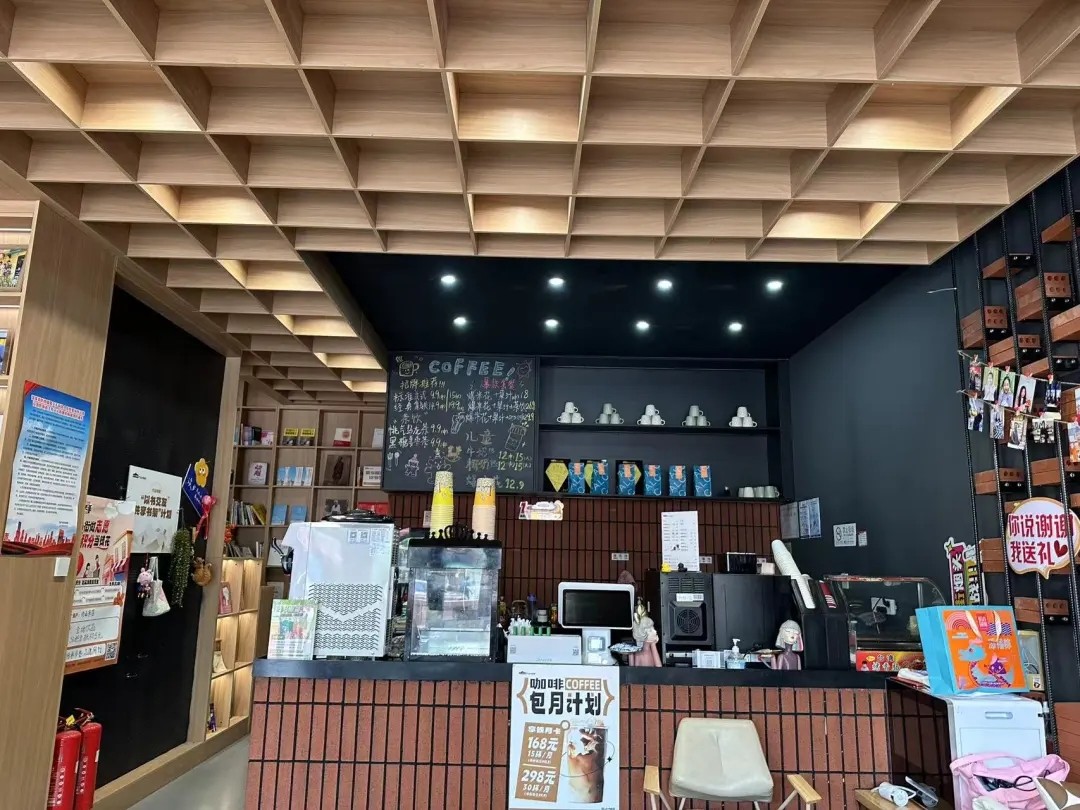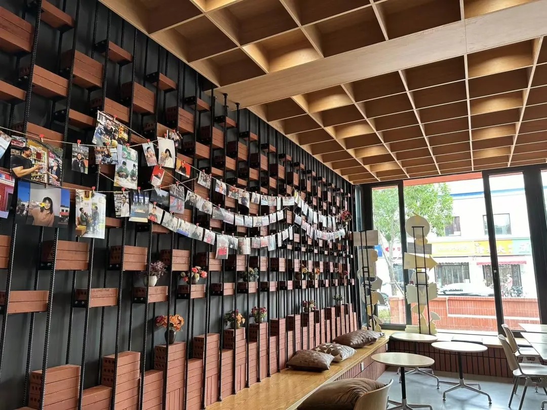 书店最西侧也摆满了暗红色的砖块,与书店门面风格形成呼应,书店内还有咖啡、果汁,读书之余来上一杯,悠闲惬意,夏天还上新了冰淇淋呦。