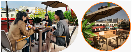 二层为露台活动区域,在这里,大家可以吹着清风,眺望远处风景,度过惬意的阅读时光。