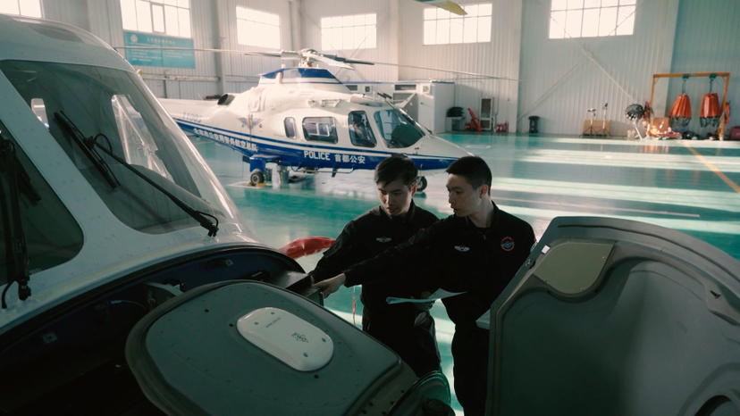 “嗡嗡嗡……”伴随着螺旋桨的轰鸣声,一架蓝白配色的警用直升机缓缓降落在机坪中央。田大林将这个铁家伙迎接回库,开始仔细检查机身每一处。从直升机底部的刹车盘指示销,到旋翼上的保险丝,再到发动机润滑油的余量……将近100项检查内容,全查下来就得一个小时。