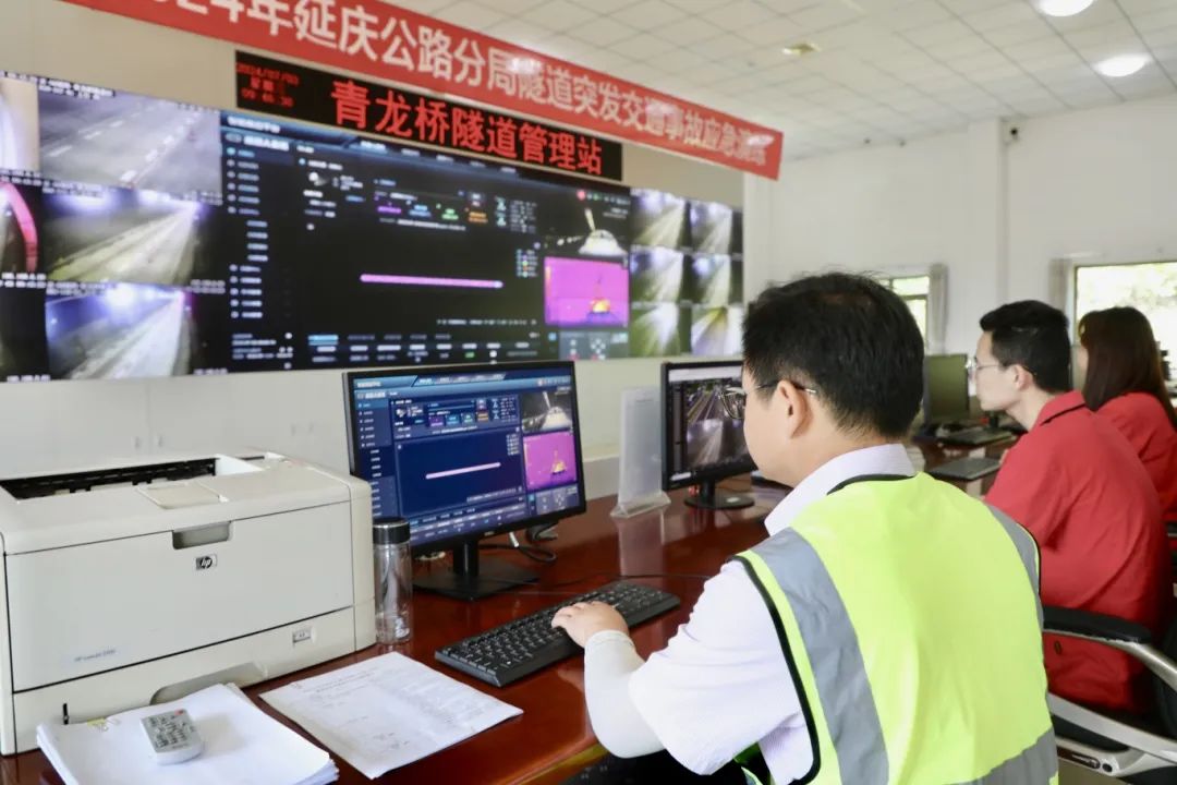 7月3日上午,在青龙桥隧道管理站内,工作人员正在通过智能监测系统对机器人进行远程遥控,实时掌握隧道运营状况,精准掌握病害发展状况,全方位防范化解风险隐患。