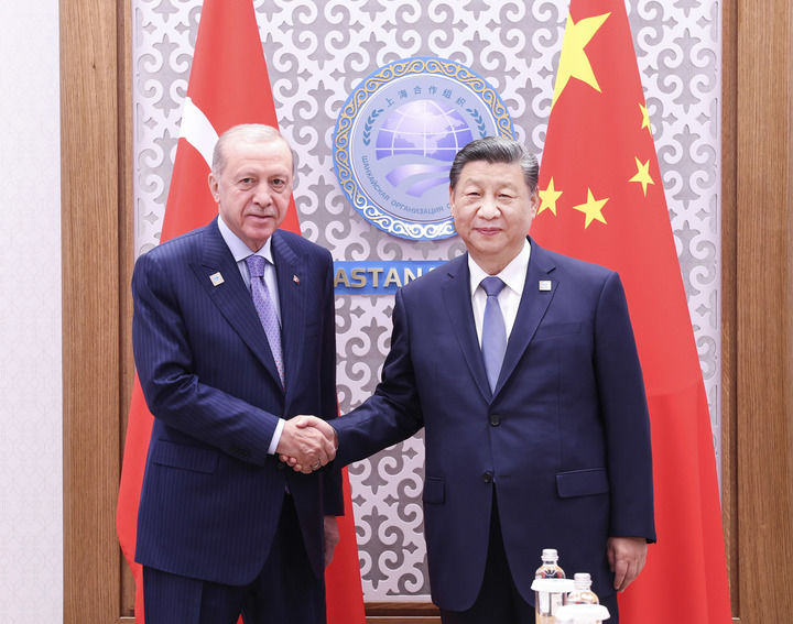 新华社阿斯塔纳7月4日电 当地时间7月4日下午,国家主席习近平在阿斯塔纳出席上海合作组织峰会期间会见土耳其总统埃尔多安。