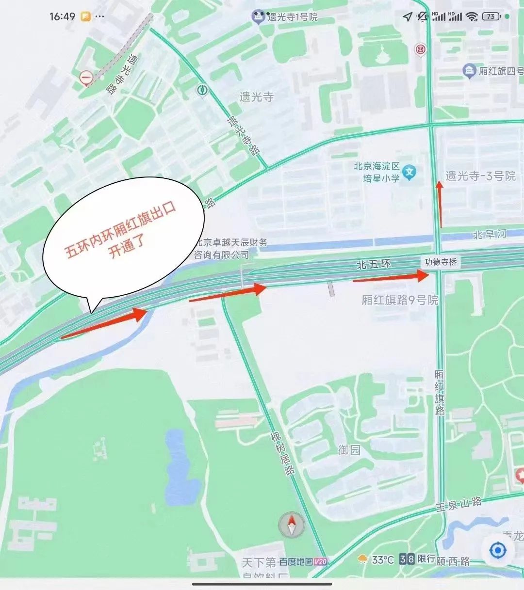 “五环路功德寺方向出口打开了,大大缩短了我们的出行时间,接送孩子上下学也更方便了。”家住林科院社区居民徐女士向记者说道。