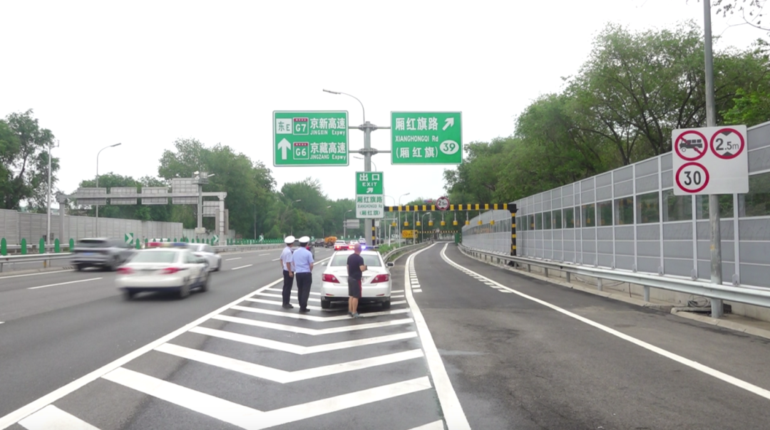 “我们在39号出口处,码放了两个2米5的限高装置,提示货车前方为禁行路段。”海淀交通支队黄庄大队民警张逸伟向记者说道,“39号出口的打开,对区域交通起到了立竿见影的效果,不仅提升了交通通行的秩序以及通行的效率,也改变了厢红旗路段路况拥堵的情况。”