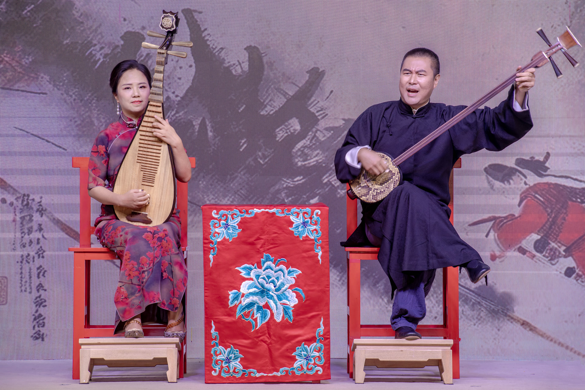 第二个节目大胆创造了一个全新曲牌——AI夜息香。单弦艺术家刘禹借鉴琵琶传统曲目《十面埋伏》,又延续了50年代南北曲艺交流时北方曲艺大家马增惠曾拜评弹名家蒋月泉先生为师、并把评弹演唱方式融入单弦的文化传统,并和AI人工智能作曲合作,创造而成以全新曲牌“AI夜息香”亮相的单弦岔曲《十面埋伏》。刘禹、孙晨荟两位艺术家精彩的演奏和演唱,将古代战场上的紧张气氛以及霸王与虞姬之间的情感都展现得淋漓尽致。“AI新曲牌的推出,不仅代表着曲艺与科技的结合成果,丰富了曲牌内容,加强了表现手段;更代表着曲艺艺术家们推陈出新的勇气和决心,以科技赋能曲艺,用AI助力传统艺术,让传统曲艺插上科技的翅膀,遨游在艺术的海洋!”“曲小艺”的评点再次得到大家的一致认同。