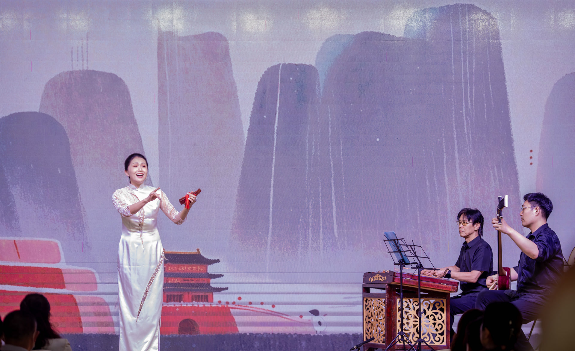 第一个节目就令人耳目一新,是由AI人工智能自动作曲系统创作,再由曲艺艺术家进行进一步加工整理、重新配器、演奏演唱的一首京韵悠长、婉转动听的曲韵雅集《北京的声音》。一曲唱罢,本场演出总策划、北京曲艺家协会主席李伟建向大家娓娓道来这个作品创作的幕后故事。他先给大家展示了最初由AI人工智能自动作曲系统生成的原曲版本,虽然很好听,但是总觉得欠缺了几分韵味,因此又请来特别能接受新生事物的曲艺艺术家苏帅文、白子豪、陈彦锟进行整理加工、重新配器,由祁夏竹演唱,终于呈现出如今这版又好听又有味儿的《北京的声音》。“曲小艺”特意点评道:“虽然人工智能系统已经具备一定程度的创作能力,但传统艺术的传承与发展,还是离不开曲艺艺术家们的创作智慧。”