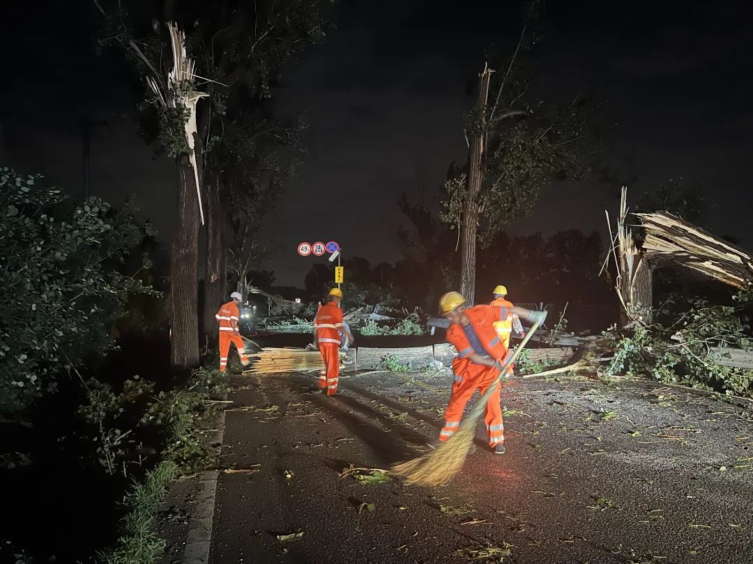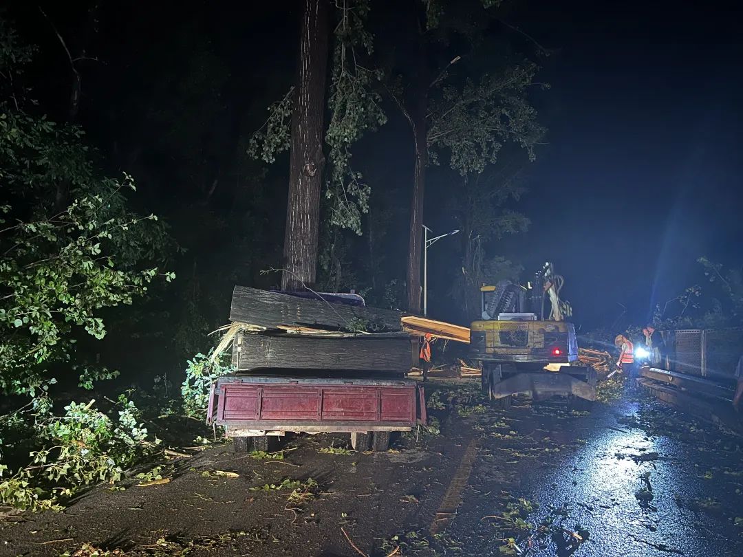 7月6日19时,昌平区怀昌路兴寿段多处路树被风吹倒、压砸线缆,交通信号灯瘫痪,沿线约7公里路段双向交通阻断。北京市交通委员会昌平公路分局立足“大应急、大统筹、大调度”,第一时间派出养护抢险队伍113人,会同京密引水管理处,与区应急局、区园林绿化局、区经信局、供电公司、属地政府等相关单位及当地村民共同形成协调联动、多层并进的救援合力,共计出动抢险人员350余名、车辆设备200余台套。