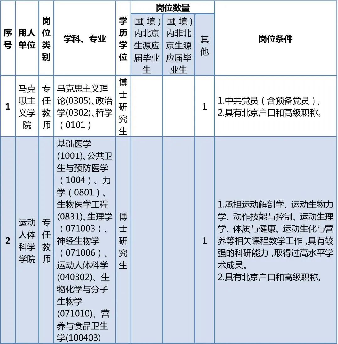 5.具有所报岗位要求的其他条件。具体要求详见《北京体育大学2024年第二批公开招聘岗位一览表》。