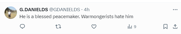 有网友说,“他是一个和平缔造者。战争贩子恨他”。