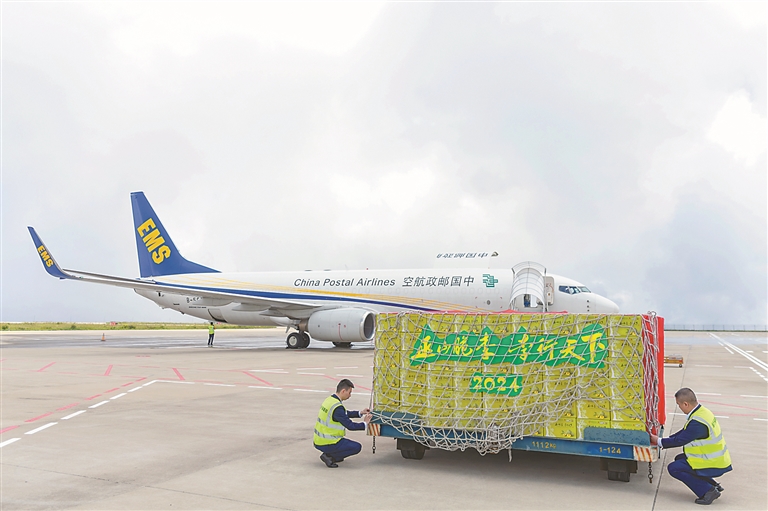 今年,巫山脆李首次实现利用货运无人机从重庆市巫山县曲尺乡起飞转运至重庆巫山机场,再通过“邮运通”极速鲜邮航专机运至江苏南京,经南京邮政集散中心分拨,24小时内便可速运至全国各地。此次在巫山探索的“即时响应+无人机转运+‘极速鲜’”专机航线运输新模式,突破了时间、空间等限制,构建起巫山脆李“空空联运”寄递物流体系。