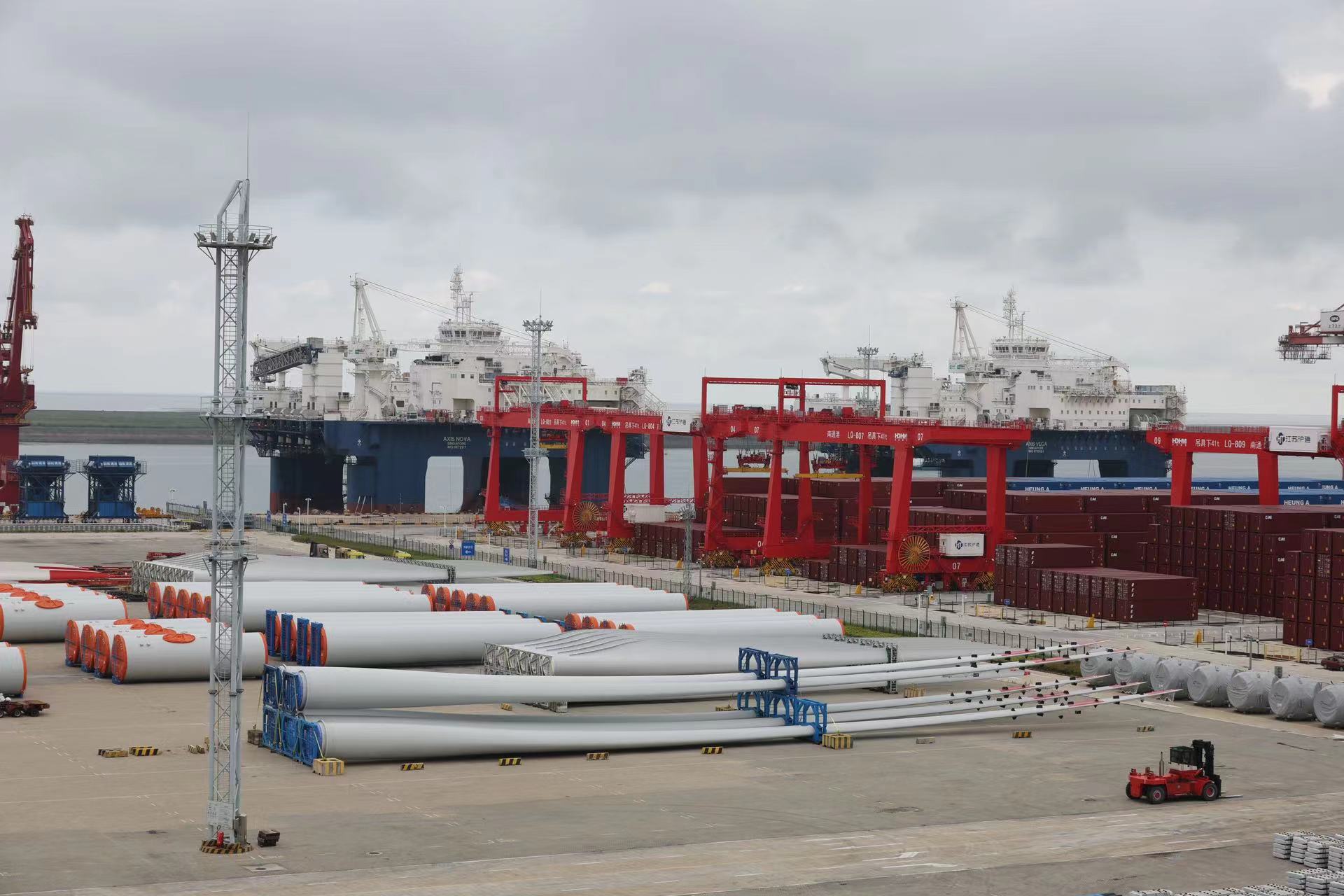 启东吕四港“2+2”码头(即2个10万吨级通用码头、2个10万吨级集装箱码头)上,港机高耸、堆场货满。这座开港不久的深水大港,实现了开港即繁忙。去年,港区散杂货吞吐量超200万立方,开通首条集装箱国际航线,成为东部沿海风电叶片出口的重要港口。