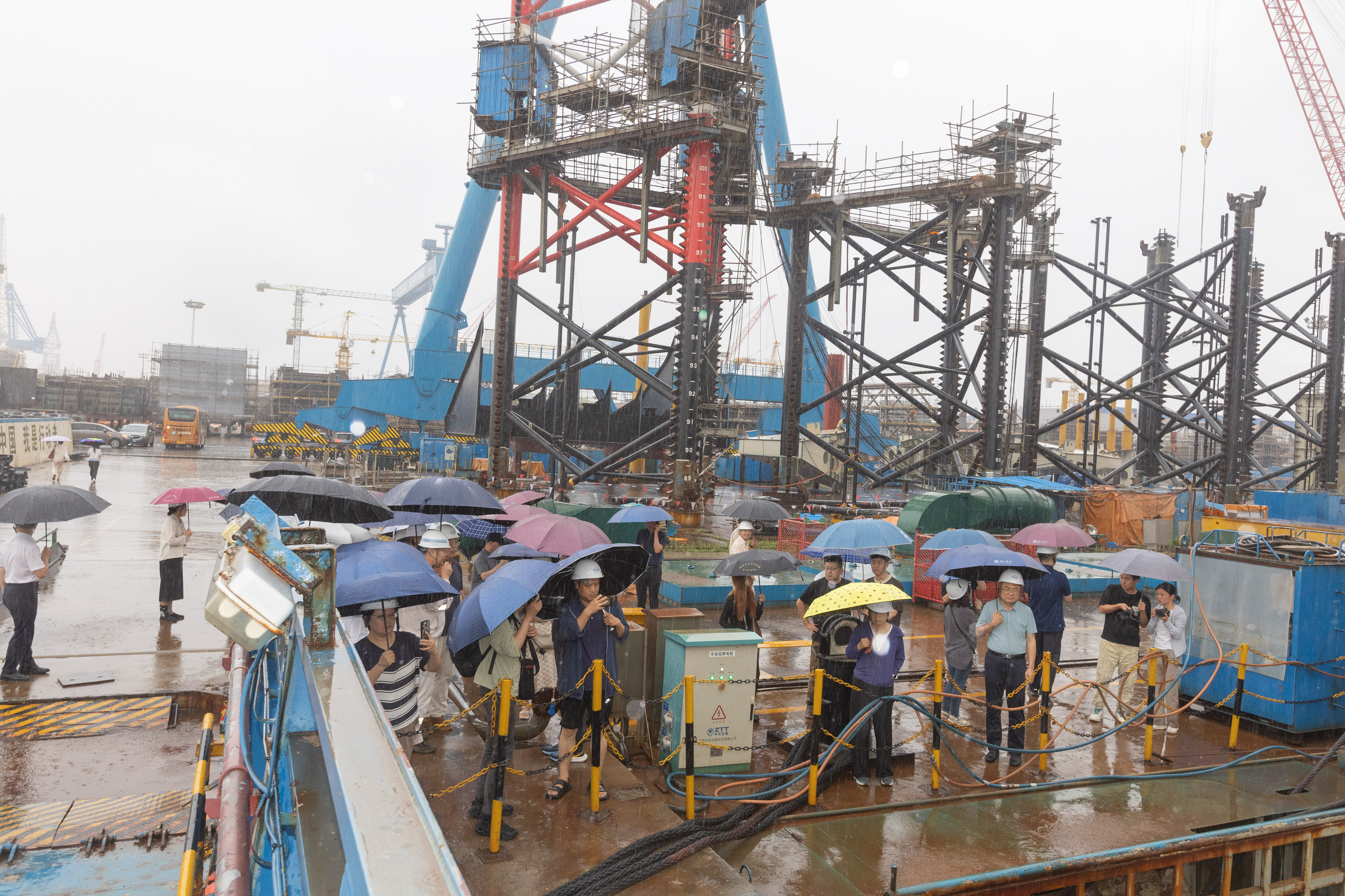 启东海工船舶工业园是诞生“大国重器”的摇篮。园区紧靠已建成通车的崇启大桥北桥头堡,距上海市城区60公里。走进园区,猎猎海风,船坞内,一个个身形各异的“钢铁巨人”焊花四溅,正在紧张建造。
