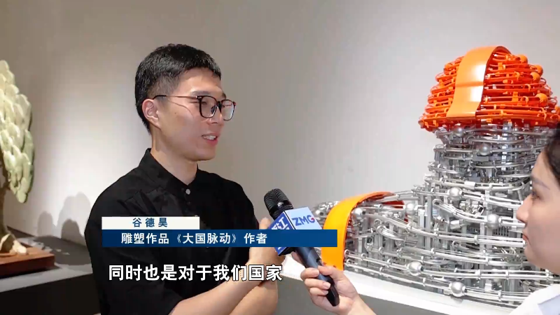 雕塑作品《大国脉动》作者谷德昊:既致敬了我们大国工匠这些建设者,同时也是对于我们国家的这个基础设施取得辉煌成就,通过雕塑的艺术与科技相结合的方式来进行呈现。