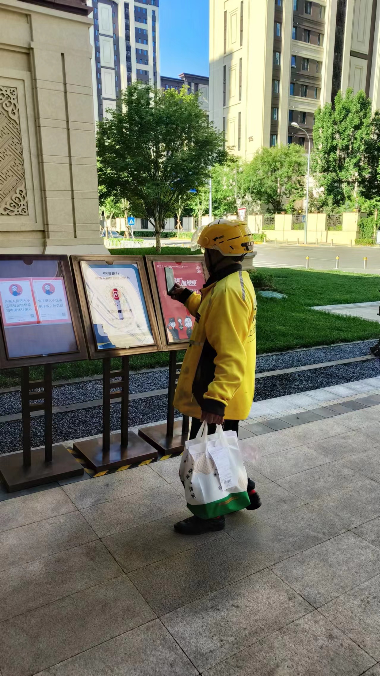 “我们送外卖的就是跟时间赛跑,可小区管得严,登记耽误时间超时了,我这单就白干了。”“保安不让骑电动车进小区送货,经常有居民买的饮料、米面油等大件重物需要配送,远的我得搬着货物走四五百米,太耽误事儿了。”……天和街社区管辖着三个商品房小区,以前,外卖、快递员到小区门口,需要先在纸质表格上现场登记,再步行入户送达。由于小区安全管理严格,外卖、快递员多有抱怨,送单超时现象时有发生。