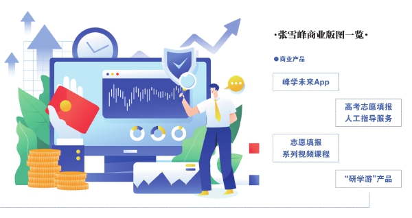 公开信息显示,张雪峰持股的峰学蔚来主要业务为高考志愿填报服务。据此前报道,2024年高考结束后,张雪峰团队针对高考生推出了志愿填报咨询服务,两种咨询服务套餐分别售价11999元和17999元,近1.8万元的志愿填报“圆梦卡”一售而空。