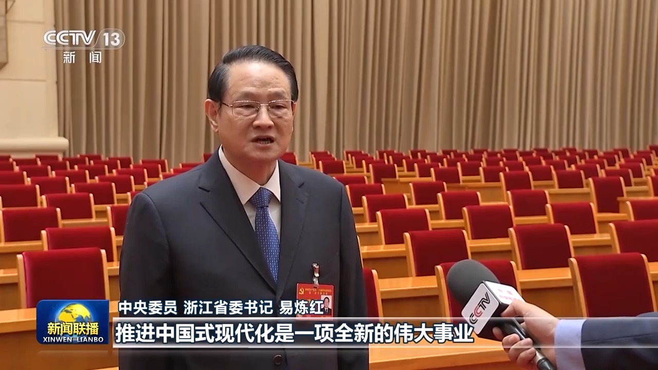 中央委员 浙江省委书记 易炼红:推进中国式现代化是一项全新的伟大事业,以进一步全面深化改革来攻坚克难、开创新局,彰显了以习近平同志为核心的党中央,既高瞻远瞩又真抓实干。我们要牢记嘱托,持续推动“八八战略”走深走实,强力推进创新深化、改革攻坚、开放提升,在奋进中国式现代化新征程上干在实处、走在前列、勇立潮头。