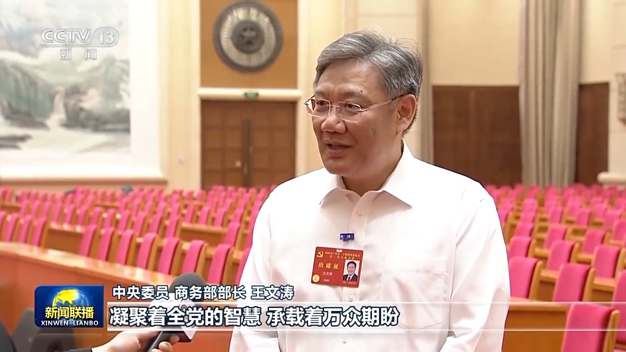 中央委员 商务部部长 王文涛:总书记的重要讲话凝聚着全党的智慧、承载着万众期盼。要坚持对外开放的基本国策。我们要把三中全会有关改革的这些要求,变成我们的任务清单和我们的工作清单,逐条来落实,扩大主动开放,通过制度的完善来促进我们的货物贸易、我们的服务贸易和我们的数字贸易,以开放促改革,用高水平的开放来推动我们高质量发展。