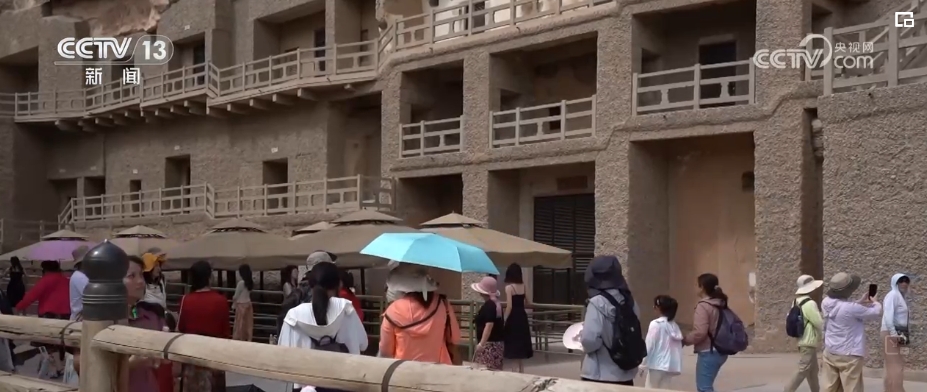 在历史上,莫高窟的营造时间持续1000多年。有不少游客这样讲:走过1.68公里长的莫高窟,相当于走过千年历史。这个暑假,莫高窟的热度持续走高。