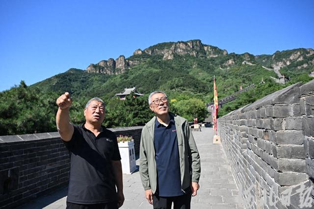 6月24日,董耀会(右)与长城保护员段海滨在黄崖关长城上。河北日报记者史晟全摄