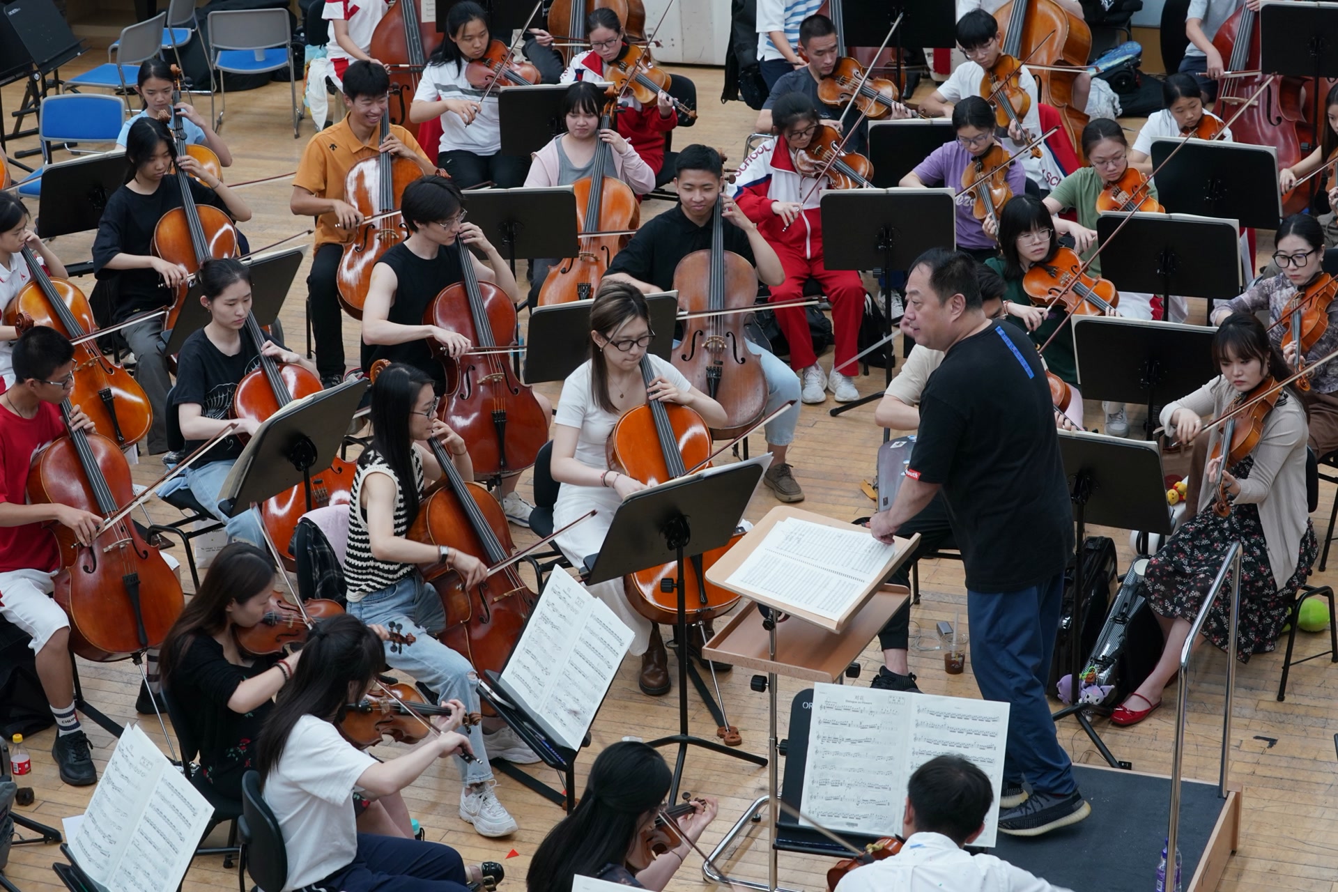 这份热忱的愿望,被乐团的导师们稳稳接住。国家大剧院管弦乐团多位声部首席与圆号演奏家韩小光等组成了有力的后盾,在单人指导、声部合奏、导师座谈等各类课程活动里,导师们倾囊相授。乐手们也在互帮互助,来自中央音乐学院的苏圻是北京青年交响乐团首席,他与同学们自发搭起导师与乐团之间的桥梁,“在作品的困难片段上,我们会多起带动作用。”苏圻说。还有些时候,导师们会用外语讲起一些专业术语,比如吕嘉曾在意大利工作生活多年,偶尔会下意识地蹦出几个意大利语词汇,“我们对这些术语更熟悉,要更好地帮助大家理解指挥的意图。”