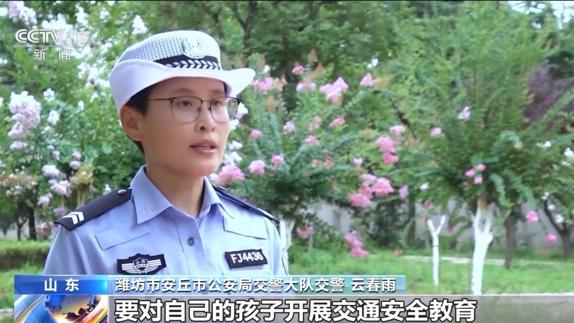 潍坊市安丘市公安局交警大队交警 云春雨:暑假期间,因学生违法驾驶电动自行车而导致的交通事故时有发生,再次提醒广大家长,要对自己的孩子开展交通安全教育,管理好车辆钥匙。