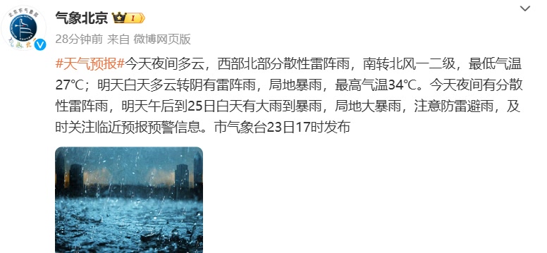 北京市气象台23日17时发布: