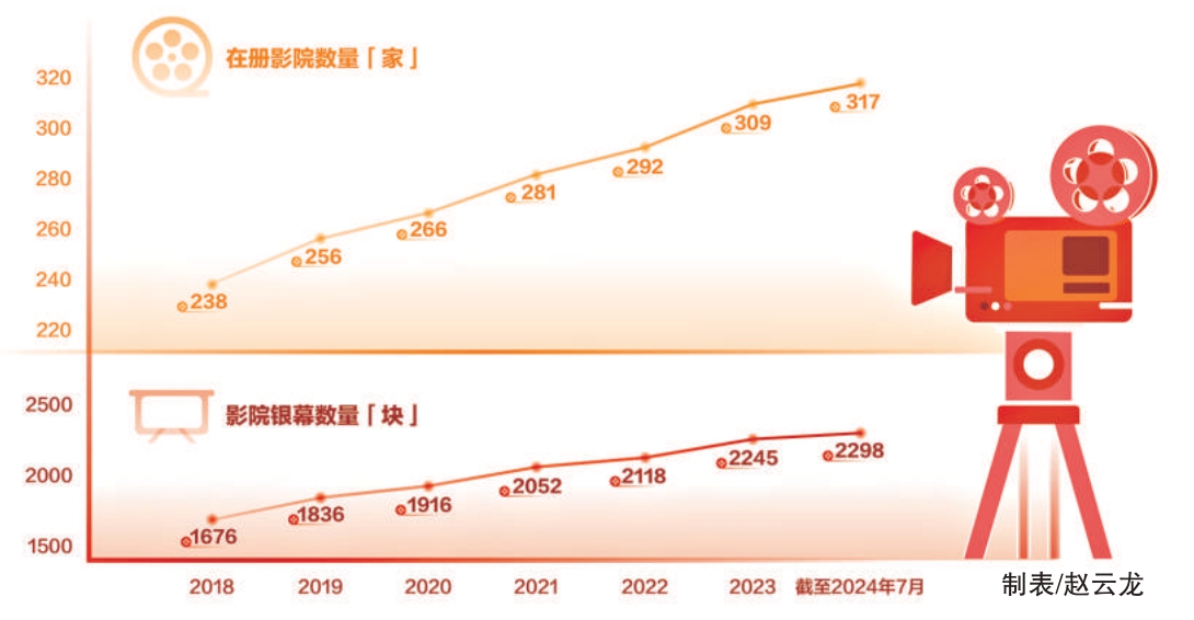 近年来,北京影院数量位居全国城市影院前列,覆盖城乡的首都影院体系初具规模。根据北京市电影局提供的数据,截至目前,全市在册影院总数达到317家,银幕数2298个,座位总数294879个。与2018年相比,影院数量增加33%,银幕数量增加37%。