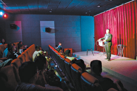 位于东四十条桥的东环影城,当下正在上演近景儿童魔术剧。北京市电影股份有限公司总经理助理段延廷说,他们借助上级单位北京演艺集团的演出资源,探索在影院里上演小型演出。“当时因为缺乏足够有吸引力的影片,影院空置率高,我们就开始在旗下东申影城(贵友店)、东环影城、金宝影城的‘京演1号厅’引入相声、魔术、儿童剧、脱口秀等小型演出。”北京的小型演出场所本就紧俏,不少演出团体正愁没地儿演出,影院又想通过演出吸引人气,双方正好一拍即合,实现双赢。