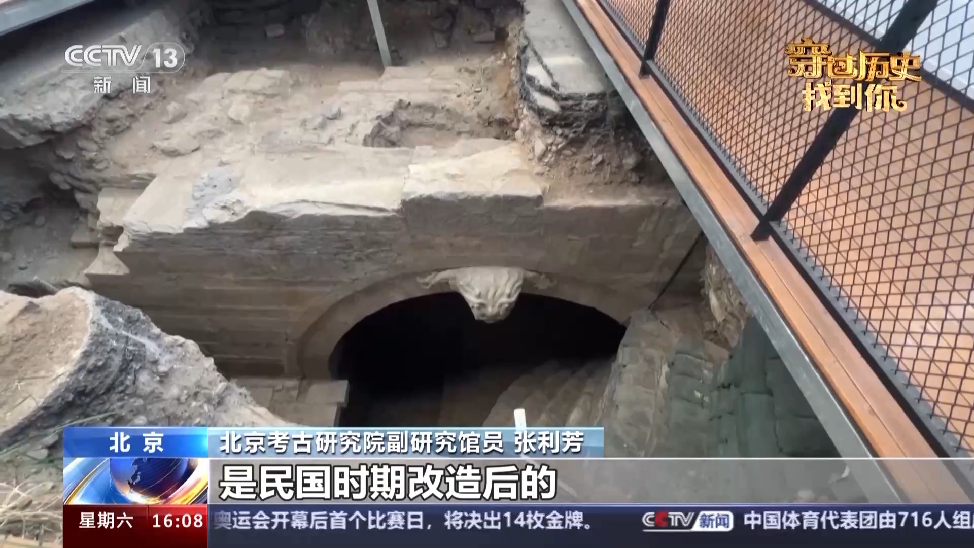 总台央视记者 任梅梅:这里就是北京中轴线正阳桥考古发掘的现场,从2021年开始,考古工作人员先后进行了两期的考古发掘工作,在我旁边就是经考古发掘出土的身长3米的镇水兽。