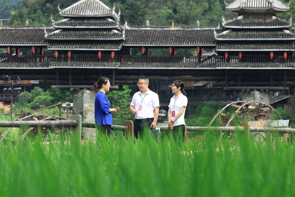 广西壮族自治区三江侗族自治县纪委监委深化乡村振兴领域不正之风和腐败问题专项整治,加强对重点项目、重大资金、重要环节的监督检查,惩治群众身边“蝇贪蚁腐”。图为该县纪检监察干部到林溪镇程阳村了解产业发展相关问题。(广西壮族自治区三江侗族自治县纪委监委 梁晓 摄)