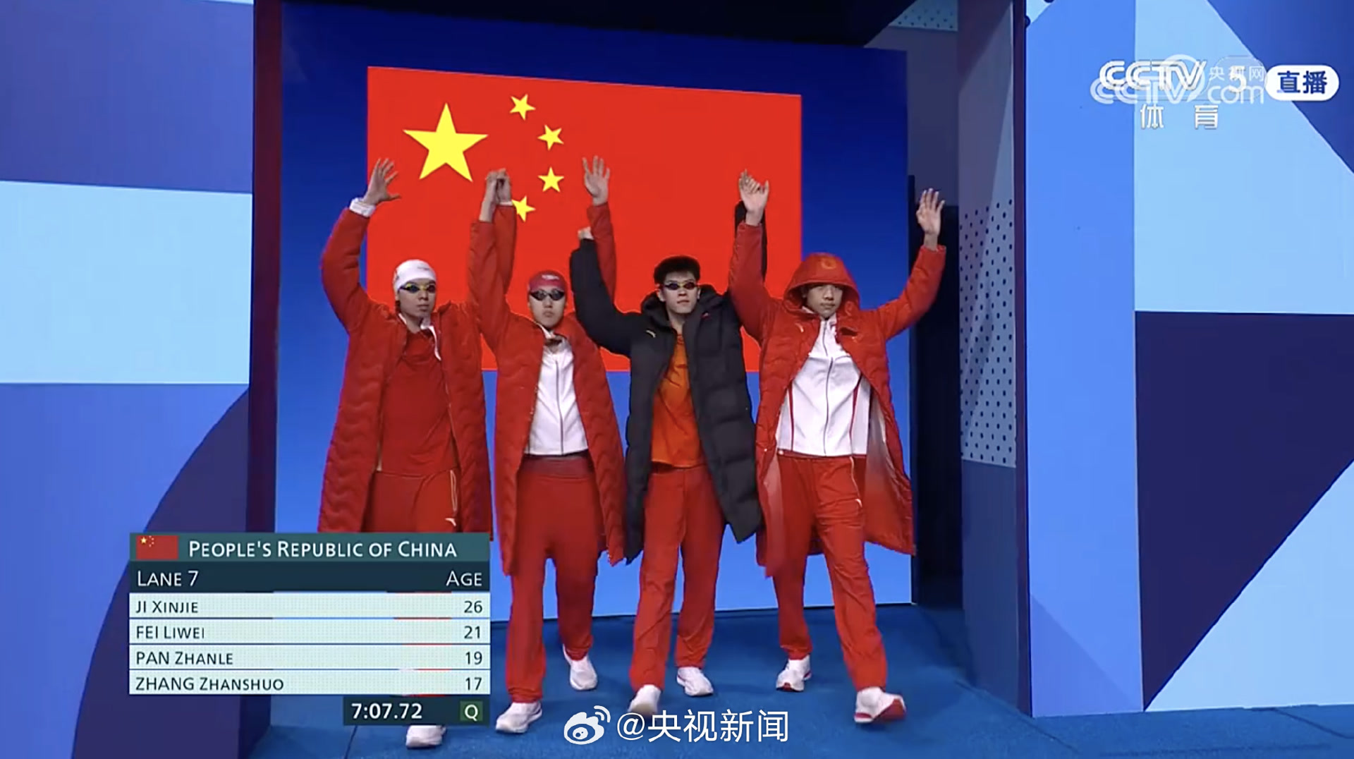 巴黎奥运男子4x200米自由泳接力决赛,由季新杰、费立纬、潘展乐、张展硕组成的中国队获得第4名!