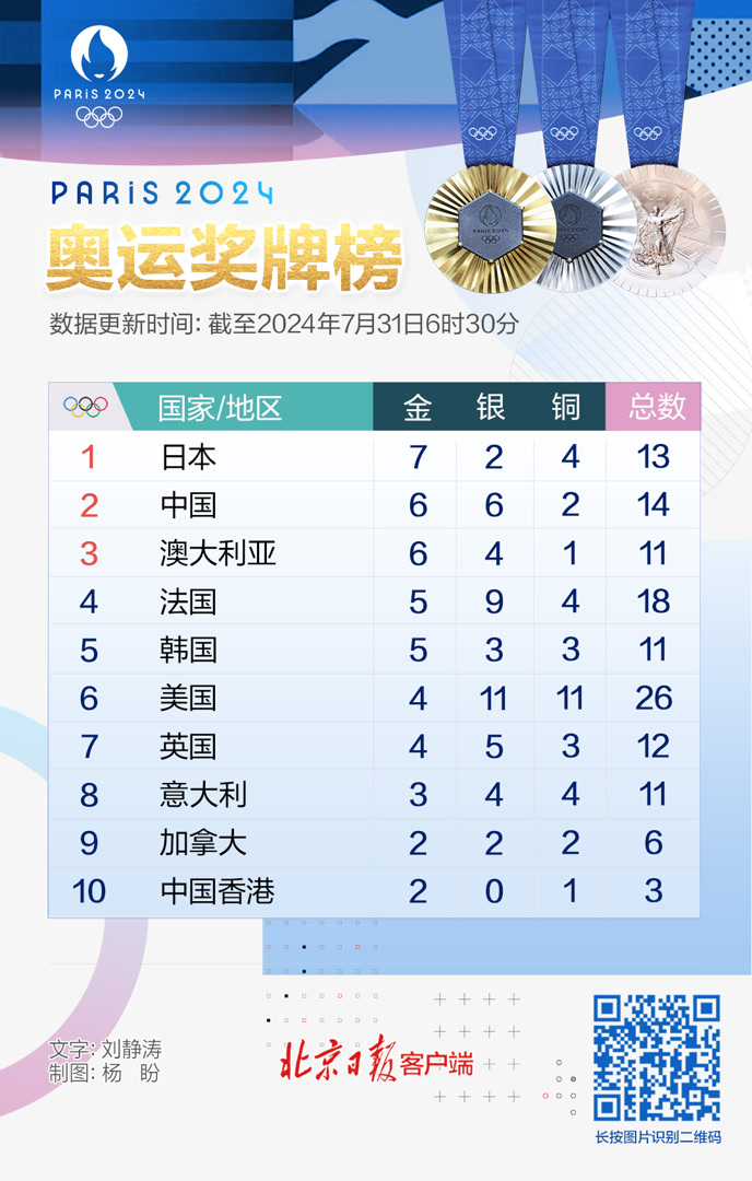巴黎奥运会第四个比赛日,中国代表团共取得1枚金牌和1枚银牌: