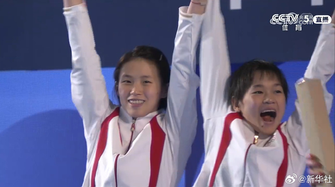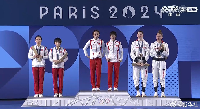 7月31日,在巴黎奥运会跳水女子双人10米台决赛中,中国组合全红婵/陈芋汐夺冠,赛后,他们登上冠军领奖台戴上了金牌!姑娘们太棒了!