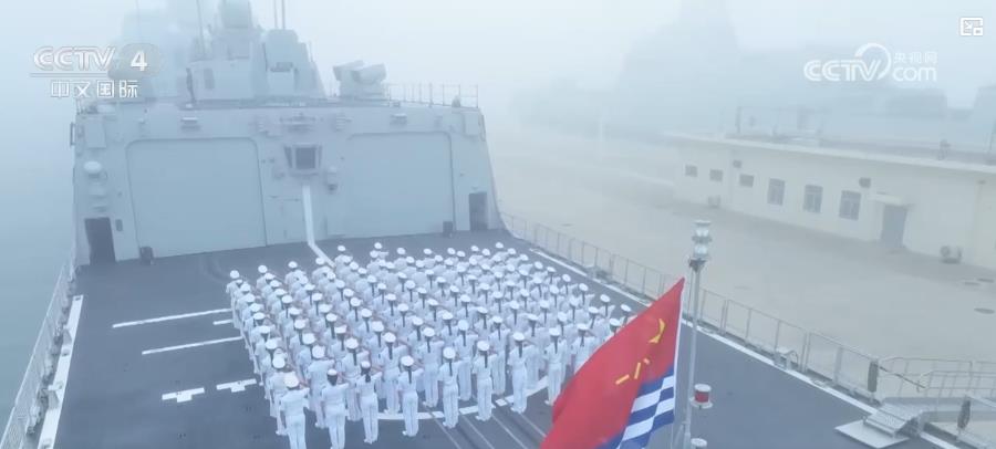 在清晨的薄雾中,以人民军队诞生地命名的万吨大驱首舰南昌舰官兵集结于飞行甲板,以重温军人誓词的方式纪念人民军队的诞生。“英雄城、英雄舰、英雄兵、第一枪、第一舰、第一人”的舰训,将崇尚英雄、争当英雄的思想融入到官兵的日常训练生活中。