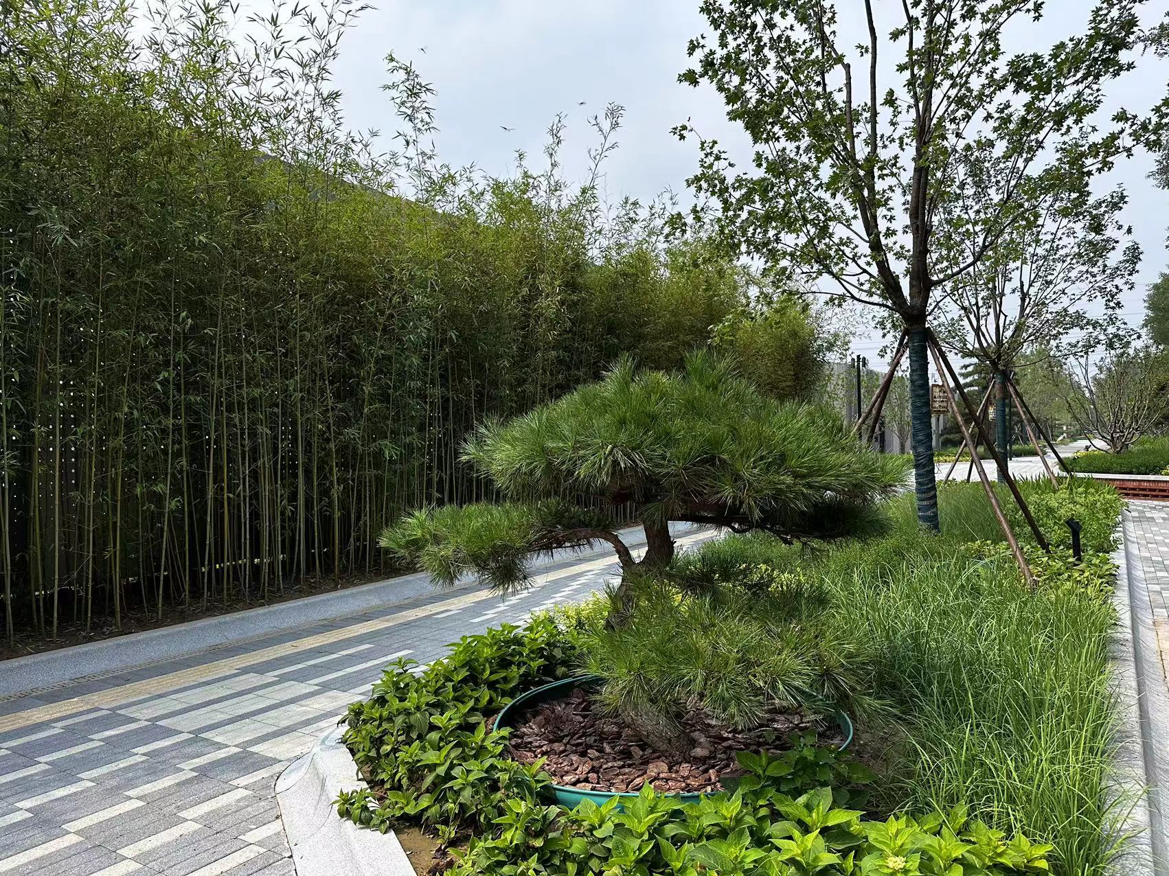沿着台湖西路南行,道路西侧设计了一系列园艺景观,五角枫、迎客松、黄杨等形成高低错落的视觉效果,花坛周边设计了休闲座椅,地面和花坛的砖石在颜色与设计上特意点缀以演艺特色和运河元素,给人耳目一新的感觉。最南侧的“梦幻广场”区域,还为演员观众提供了场外演出活动的开阔空间,以满足各类场景演出需求,承接舞美艺术文化外溢,打造鸟语花香、流光溢彩的“城市舞台”。