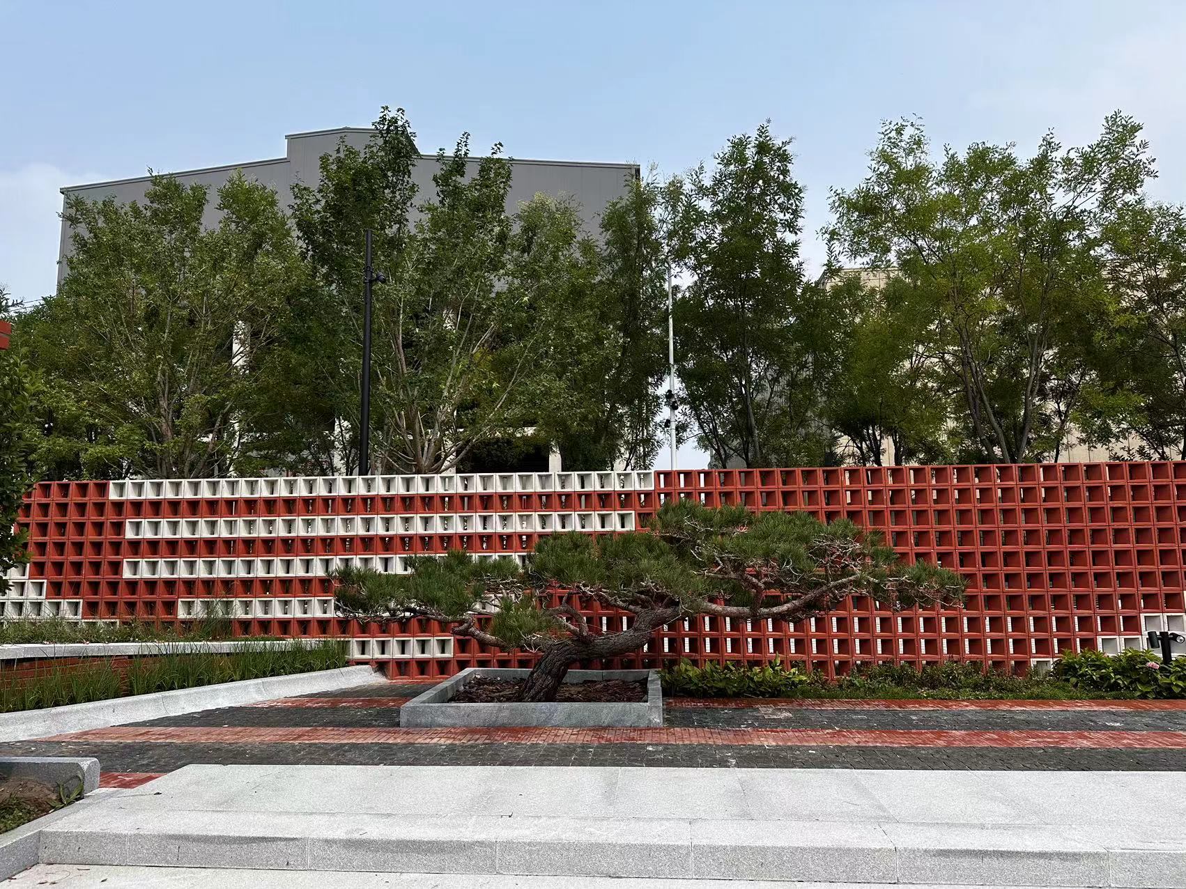 常来国家大剧院台湖舞美艺术中心的观众朋友,对剧院西侧的停车场都不陌生。过去,停好车后沿着台湖西路一直走到剧院正门,一路上都是破旧的水沟、裸露的树根以及杂草荒地,与大剧院的艺术氛围很不协调。如今,改造项目将停车场靠近剧院的东侧围墙打通,营造了“艺源之门”景观节点,一棵特意挑选的迎客松挺立中间,背景辅以剧院形象的砌筑花砖墙,形成入口门户节点,为观众留下有艺术美感的第一印象。