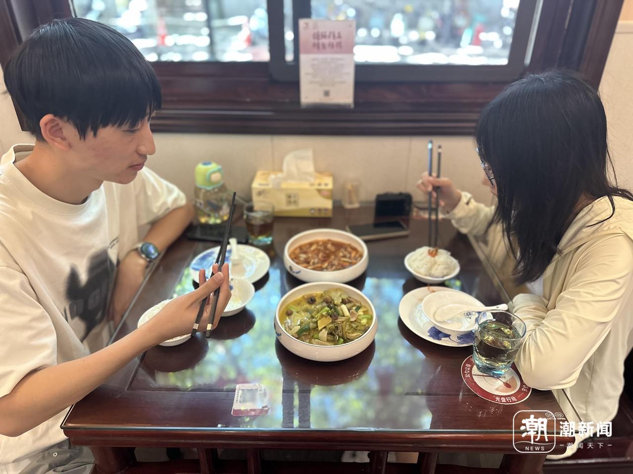 小吴和朋友在品尝药膳。潮新闻记者 章然 摄