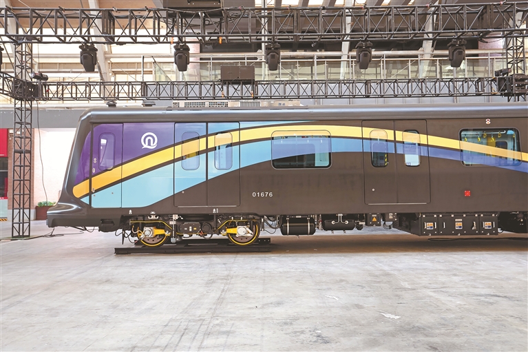 全球首列商用碳纤维地铁列车外观(局部)。中车四方股份公司 供图