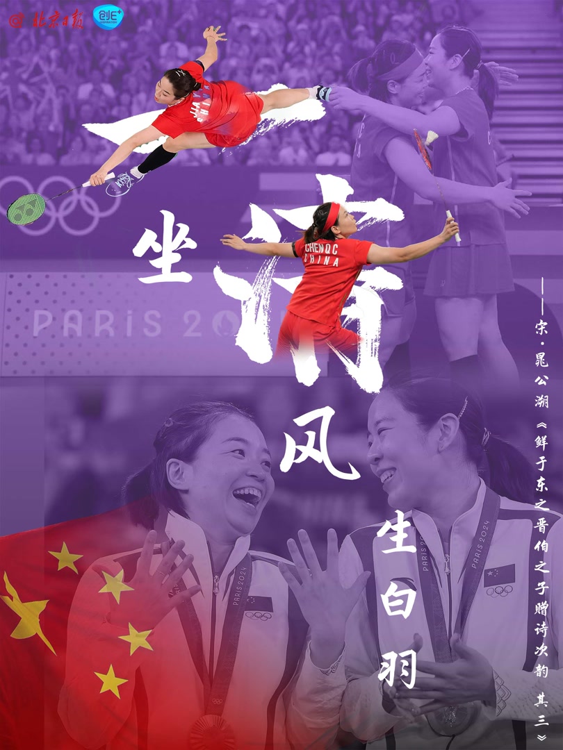 北京时间8月3日,巴黎奥运会羽毛球女双决赛,中国组合陈清晨/贾一凡获得金牌,实现职业生涯大满贯。此前,陈清晨 /贾一凡与刘圣书 /谭宁会师决赛,是时隔20年,国羽又一次女双包揽金银。决赛现场,她们高呼“中国女双第一”。一坐清风生白羽,不仅赛出世界第一的水平,更表现出中国姑娘的风采!