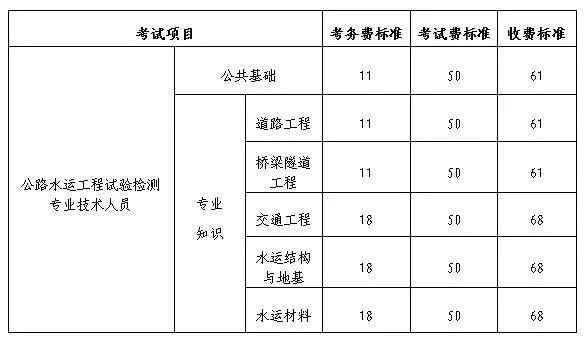 根据北京市发展和改革委员会 北京市财政局《关于公路水运工程试验检测专业技术人员考试收费标准的复函》(京发改〔2018〕1963号)文件精神,北京地区公路水运工程试验检测专业技术人员考试收费标准为: