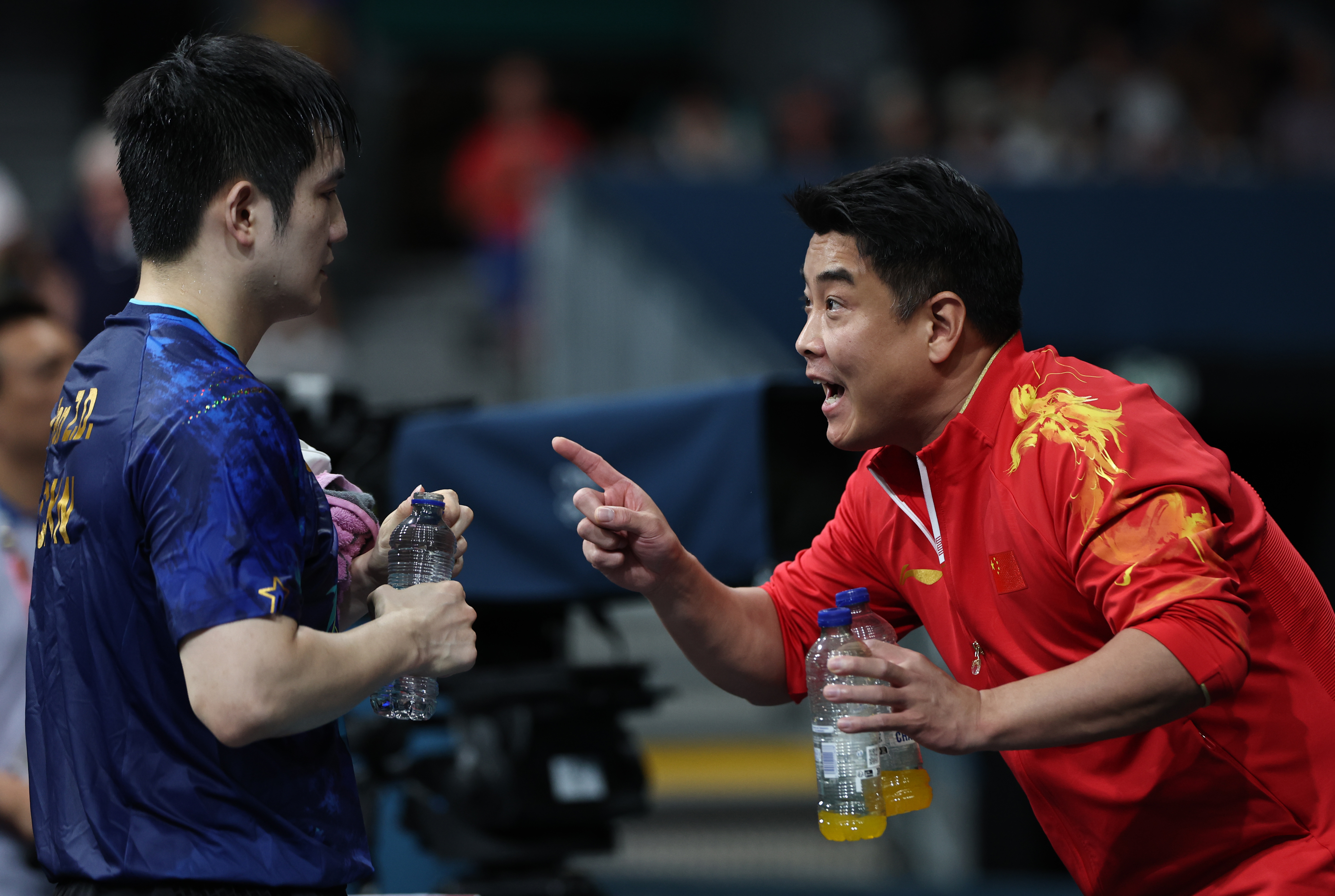 在暂停前,师徒俩已有过交流。张本智和拿下前两局,樊振东申请换球衣,王皓反复叮嘱弟子,一定要相信自己。二人换衣归来,樊振东就像变了一个人,不仅战斗值拉满,还一扫前两局颓势,“醒过来”的“小胖”很快以11:4扳回一局,之后便开启了逆风翻盘之旅。