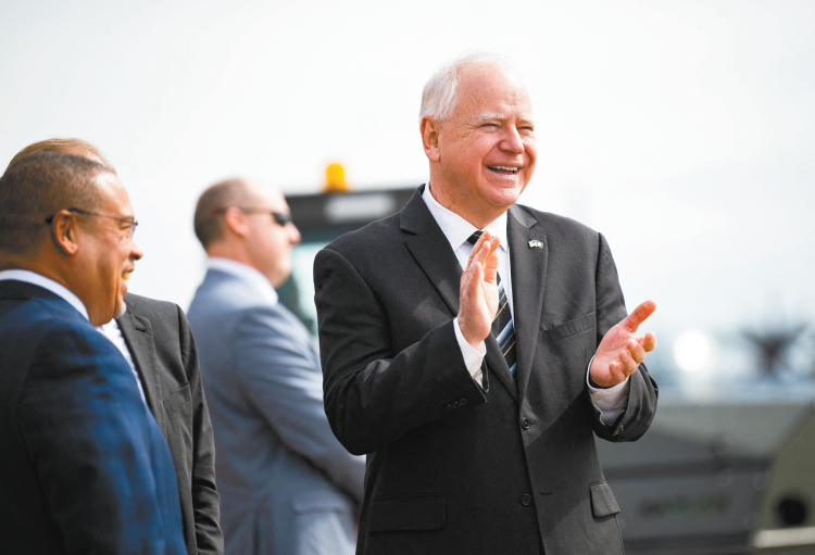 哈里斯6日宣布选择明尼苏达州州长蒂姆·沃尔兹为自己的竞选搭档。(法新社)