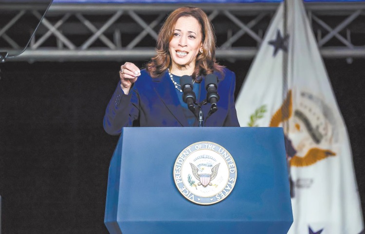 美国副总统哈里斯5日正式获得民主党总统候选人提名。(东方IC)