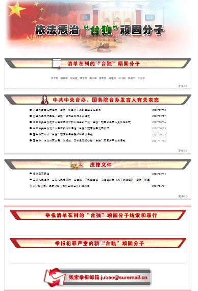 国台办增设“依法惩治‘台独’顽固分子”专栏。国台办网站截图