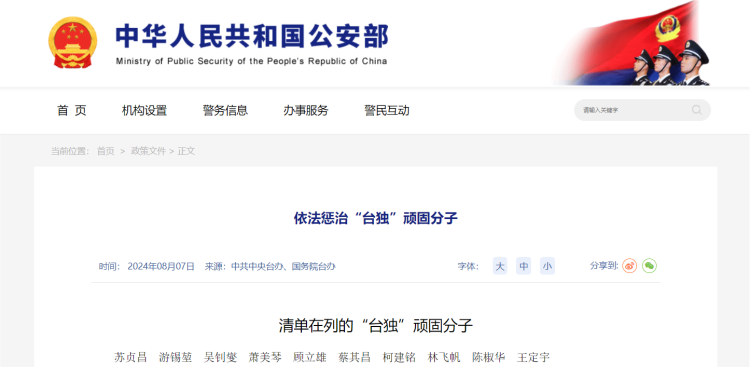 此外,《联合报》引述香港大公文汇网报道称,公安部网站也在专栏中发布“依法惩治‘台独’顽固分子”一文。报道称,以微知著、由小见大,国台办、公安部政府网站的上述新变化,表明大陆方面对依法惩治“台独”顽固分子的高度重视,再次向“台独”顽固分子敲响警钟。