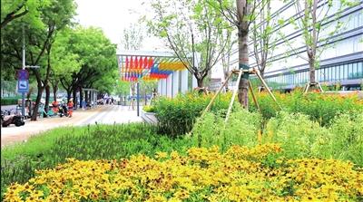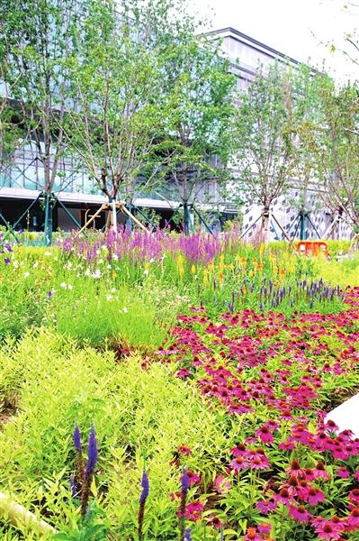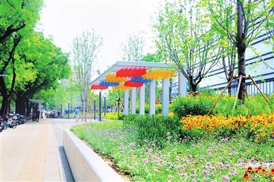 记者在北下关街道北三环沿线的1733商业空间广场看到,绚丽多彩的风雨廊架,高低错落的彩色花境、被马鞭草围绕的休闲座椅、舒适简约的候车亭一一映入眼帘。