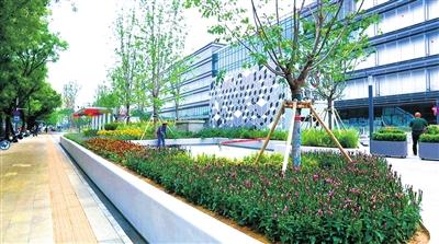 记者了解到,此次提升,在景观材料方面,北下关街道选用了超高性能混凝土,契合科创潮流的整体风貌,生态仿石透水砖与商业空间的花岗岩铺装纹样及材质顺接,形成内外一体的城市公共空间。“北下关街道与各合作单位多次打样推敲,在材料的细部处理和工艺上深入研究。由于地处核心区,使用需求密集,难以完成现场浇筑。在设计和施工过程中,我们也不断寻求创新方法,呈现精致匠心的工艺。”北下关街道城市管理办公室科员马冲向记者介绍。在植物的选择上,整个景观采用高杆樱花、娜塔栎、银红槭等春花秋色叶彩化树种,地被植物大部分采用宿根花卉,丰富补充了夏季的植物色彩。