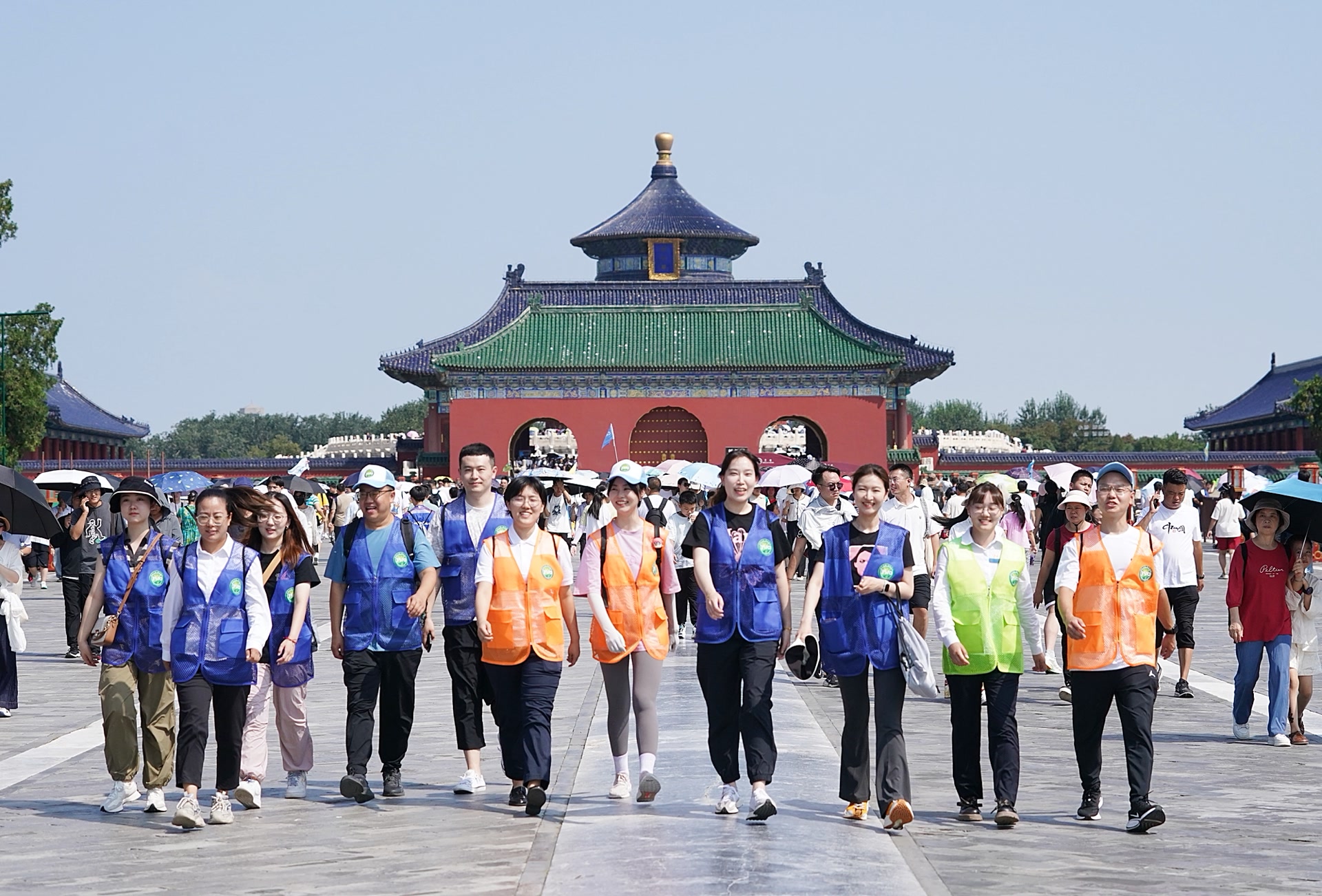 倡导绿色出行,传承中轴线文化。今天上午(8月14日),“青春与中轴线同行”3510北京青少年绿色出行宣传实践活动启动。来自全市各单位的150名青年齐聚天坛公园,通过徒步的方式共同绘出一幅“大象图”。